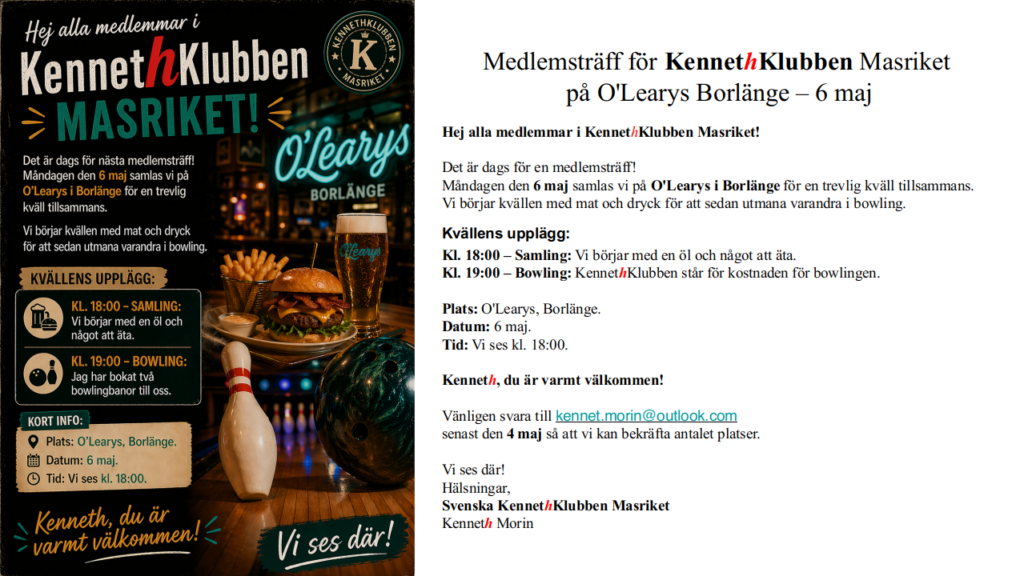 - KennethMästerskapet – där vi tävlar i både skicklighet och charm.
